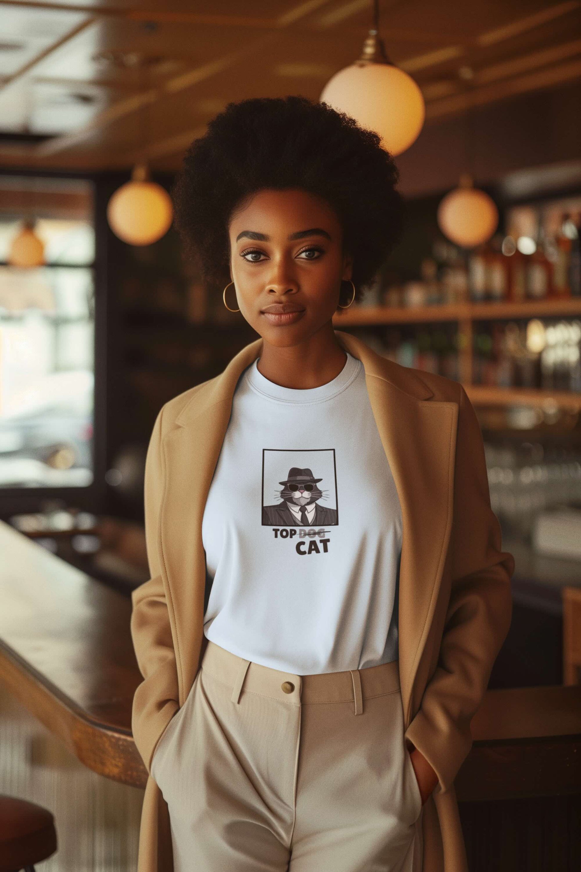 Lightweight and versatile, the Top Cat Tee makes a playful statement with its dapper cartoon cat in a suit and hat. With ‘Top Dog’ cheekily crossed out for ‘Top Cat,’ it’s the perfect everyday piece for cat lovers who know true style and attitude belong to felines.